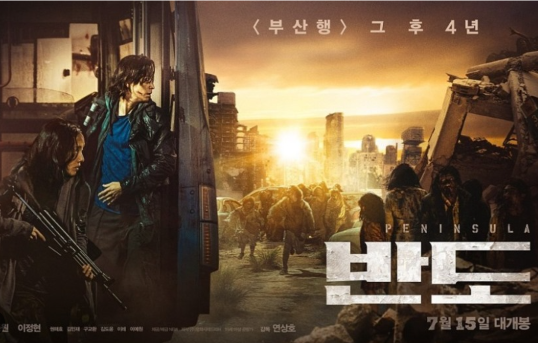 반도는 좀비가 발생하여 한국을 황폐화시킨 부산행의 재앙적인 사건 이후 4년 만에 배경이 됩니다. 이 이야기는 초기 발병 당시 홍콩으로 탈출한 전직 군인 정석(강동원)의 이야기를 다룹니다. 가족을 잃은 죄책감에 시달린 정석은 좀비가 만연한 나라의 황무지에 버려진 현금으로 거액을 실은 트럭을 되찾기 위해 반도로 돌아갈 기회를 얻게 됩니다. 그는 용병들과 함께 돈을 확보하고 더 나은 삶을 살기 위해 한국으로 돌아옵니다.